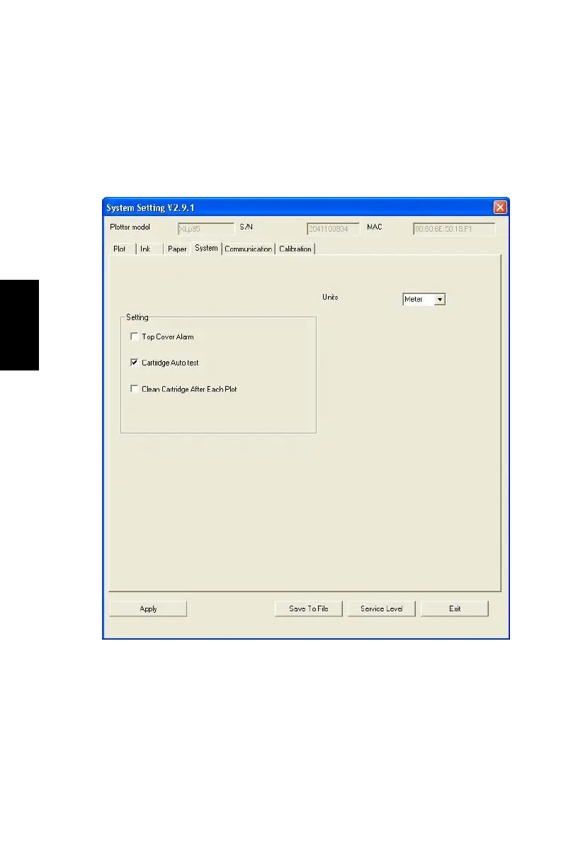 La pestaña System ("Sistema") permite seleccionar las unidades de