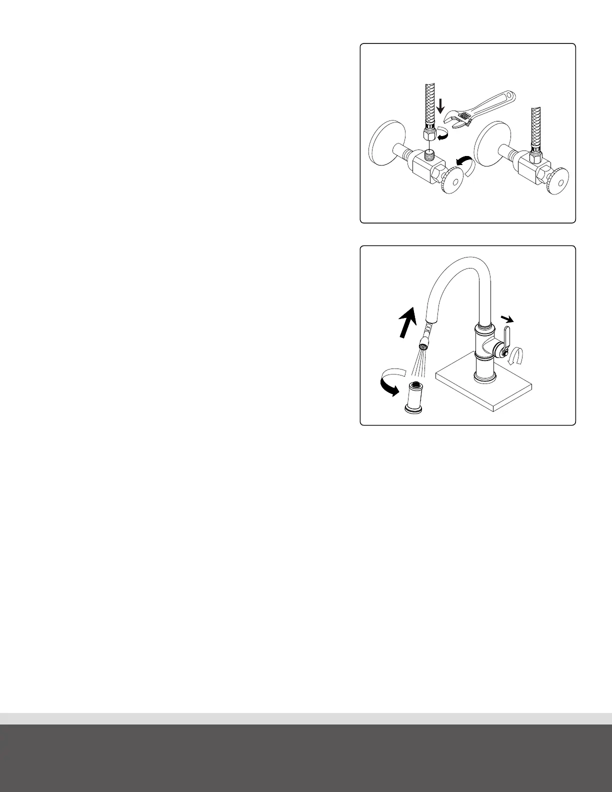 After installing the faucet, remove the spray head from the hose. Turn on