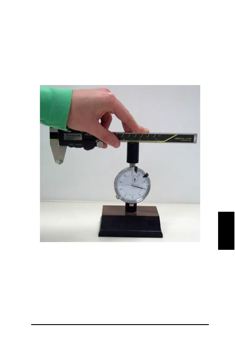 将卡尺边缘或其它水平面放置在深度器上端。