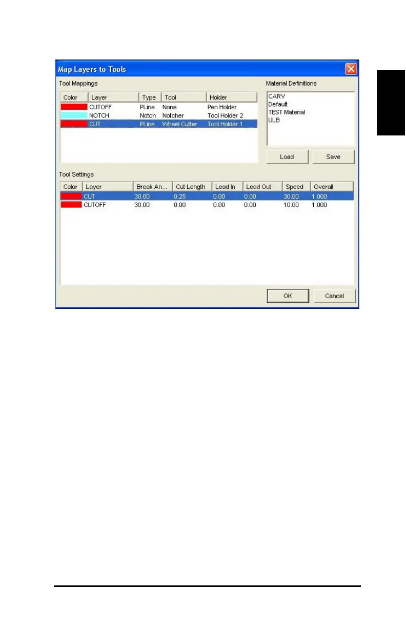 ends of the cutter and 1 inch from each of the cutter side panels.