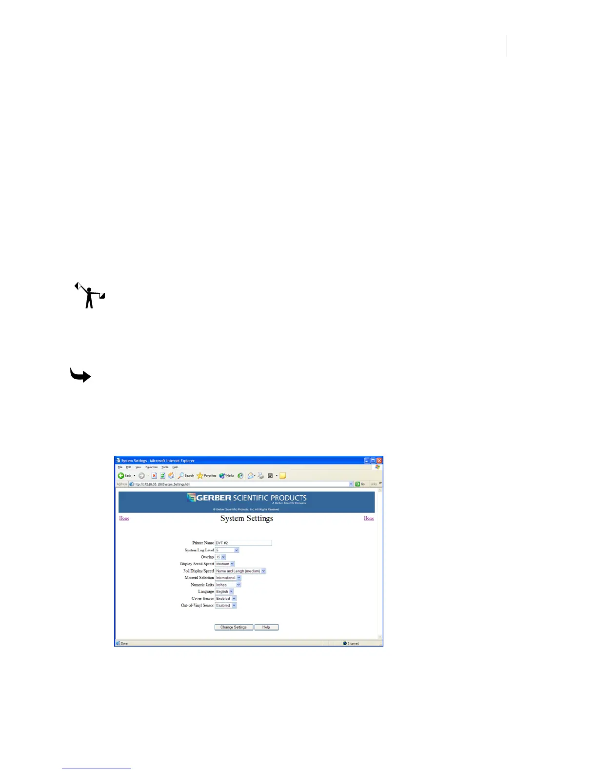 On the GERBER EDGE FX web interface System Settings page you can modify the: