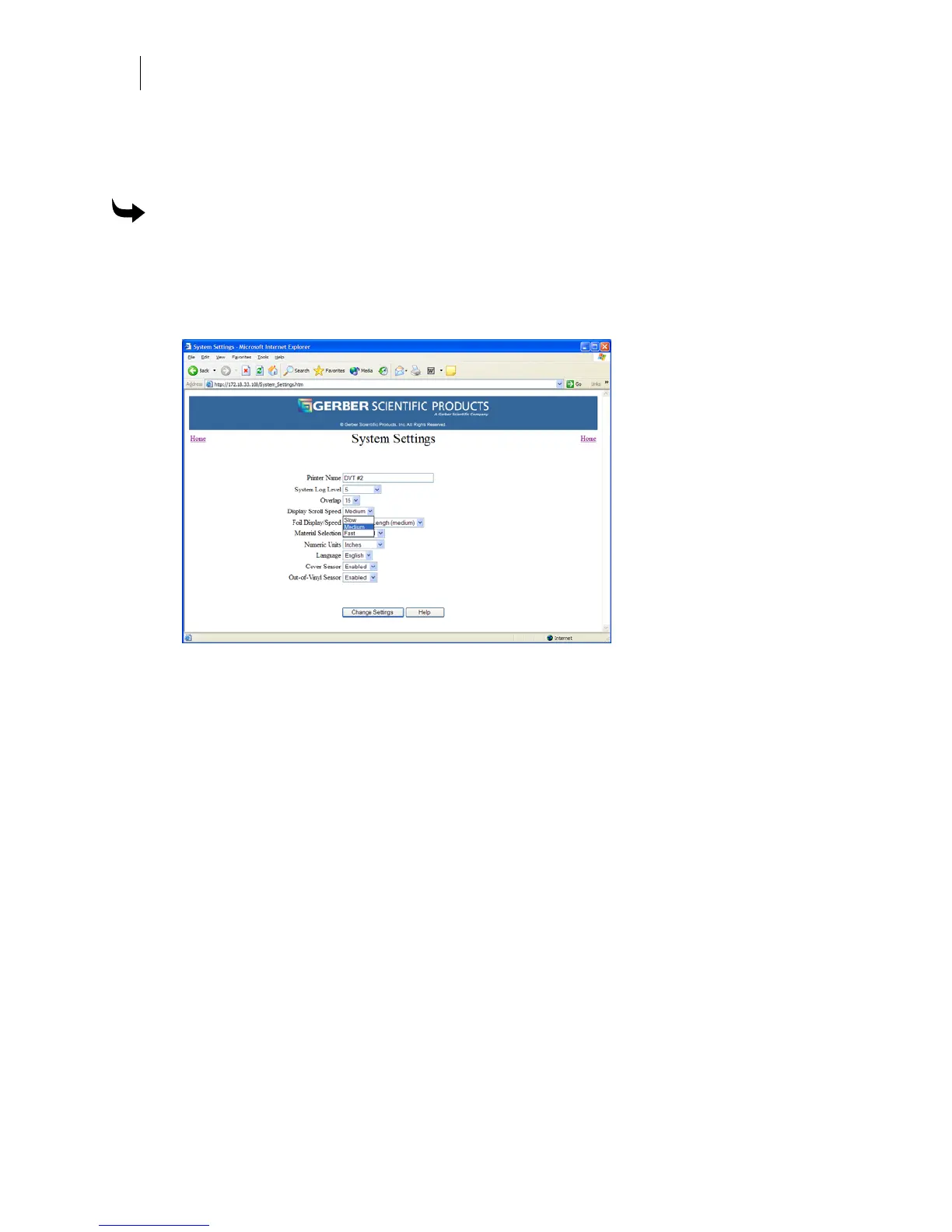 1 Open the GERBER EDGE FX web interface by entering the printer's IP address in the
