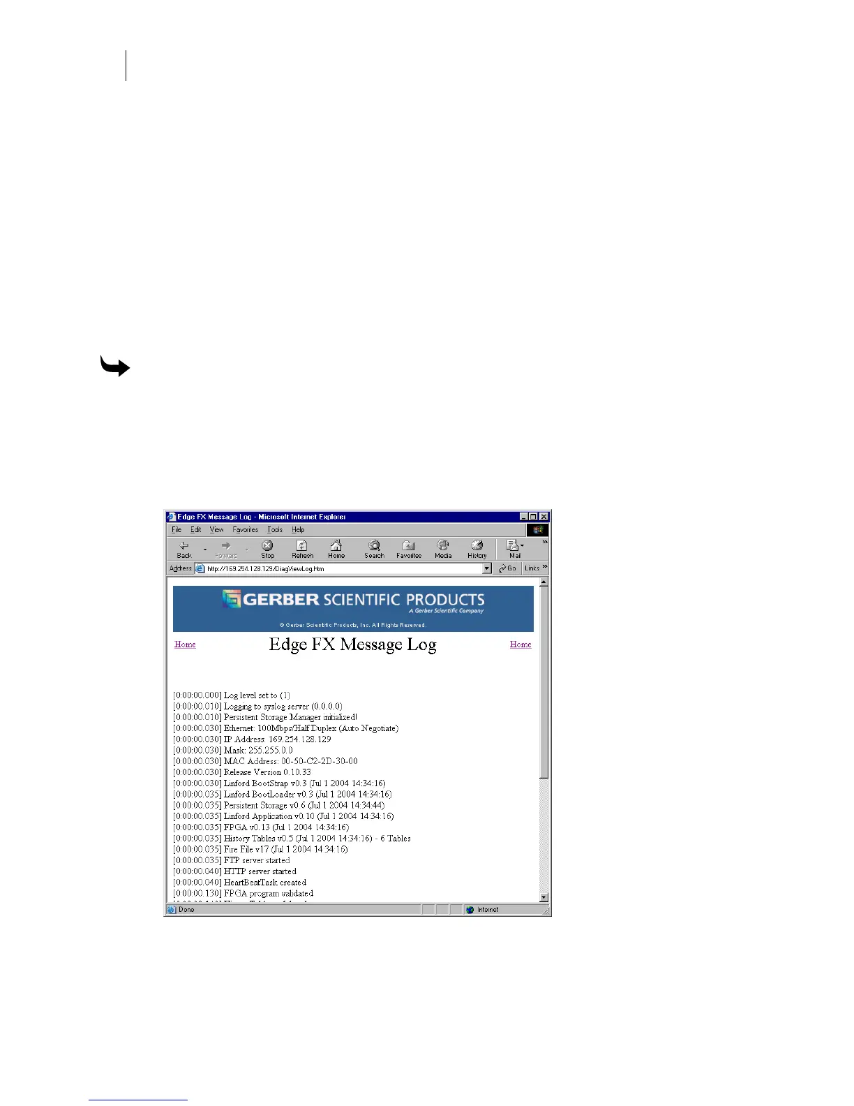 3 Click the View Log link to open the EDGE FX Message Log page.