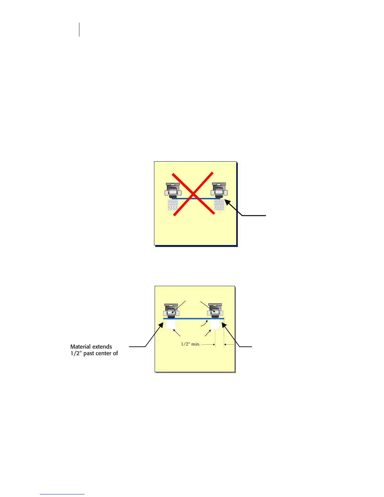 Material safely outside pinch wheels