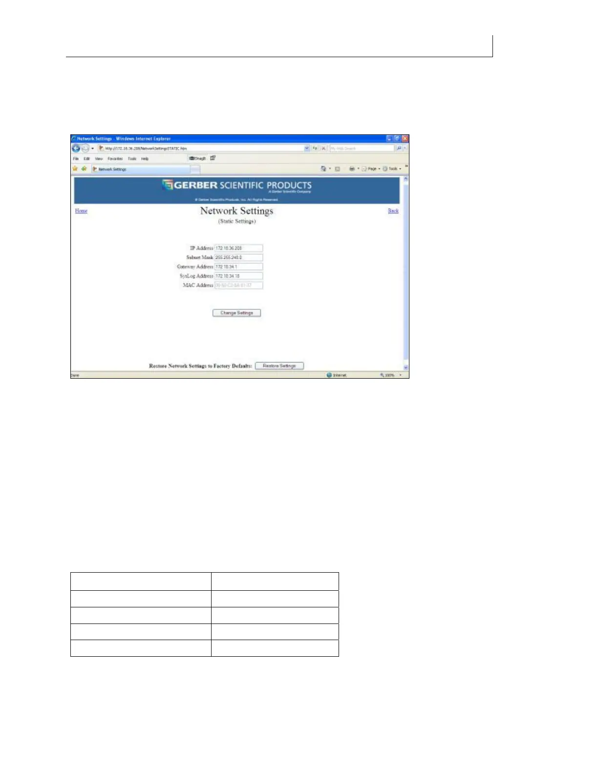 By default the Gerber Solara ion is setup to use Static (fixed) network settings. When entering