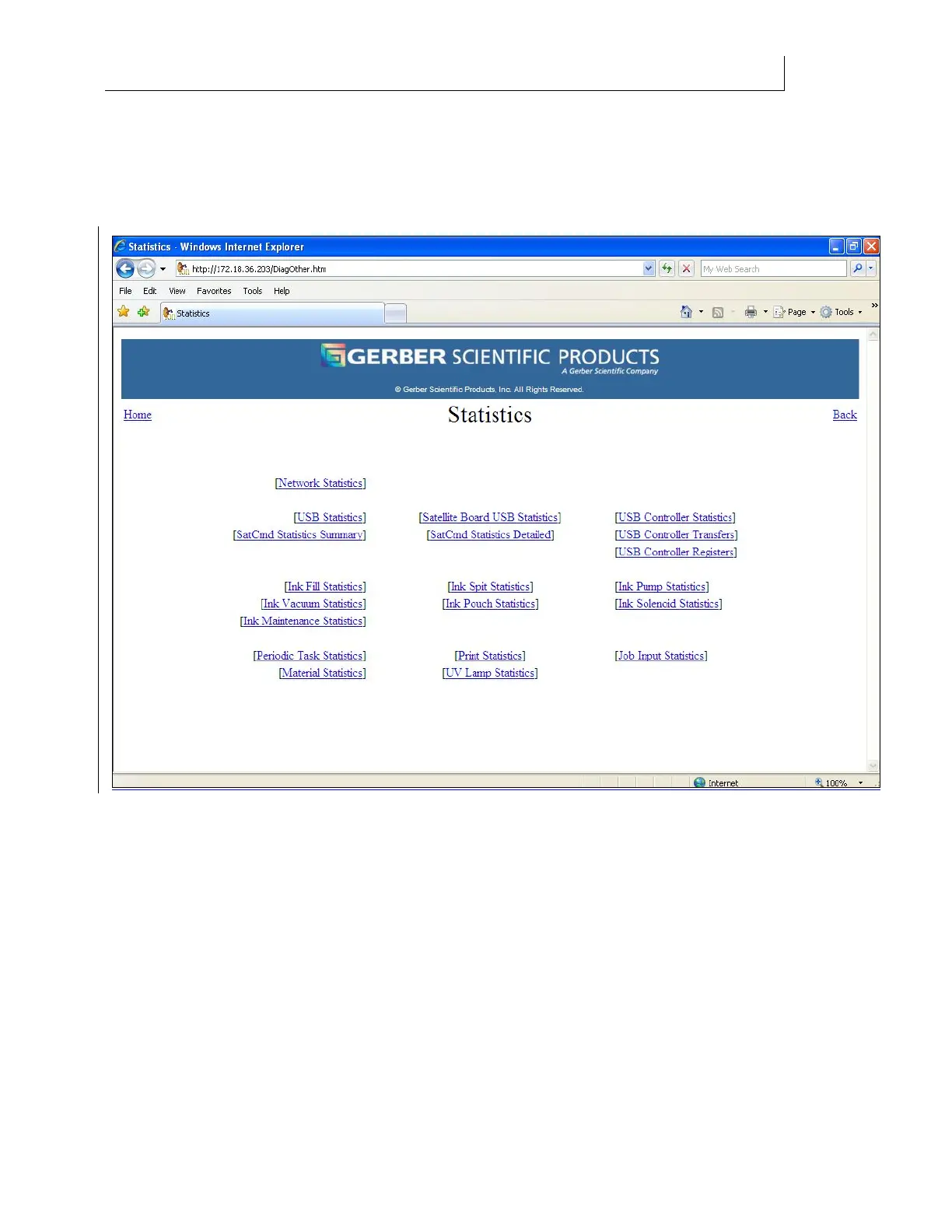 The Statistics page is available from a link on the Gerber Solara ion Diagnostics web page. It