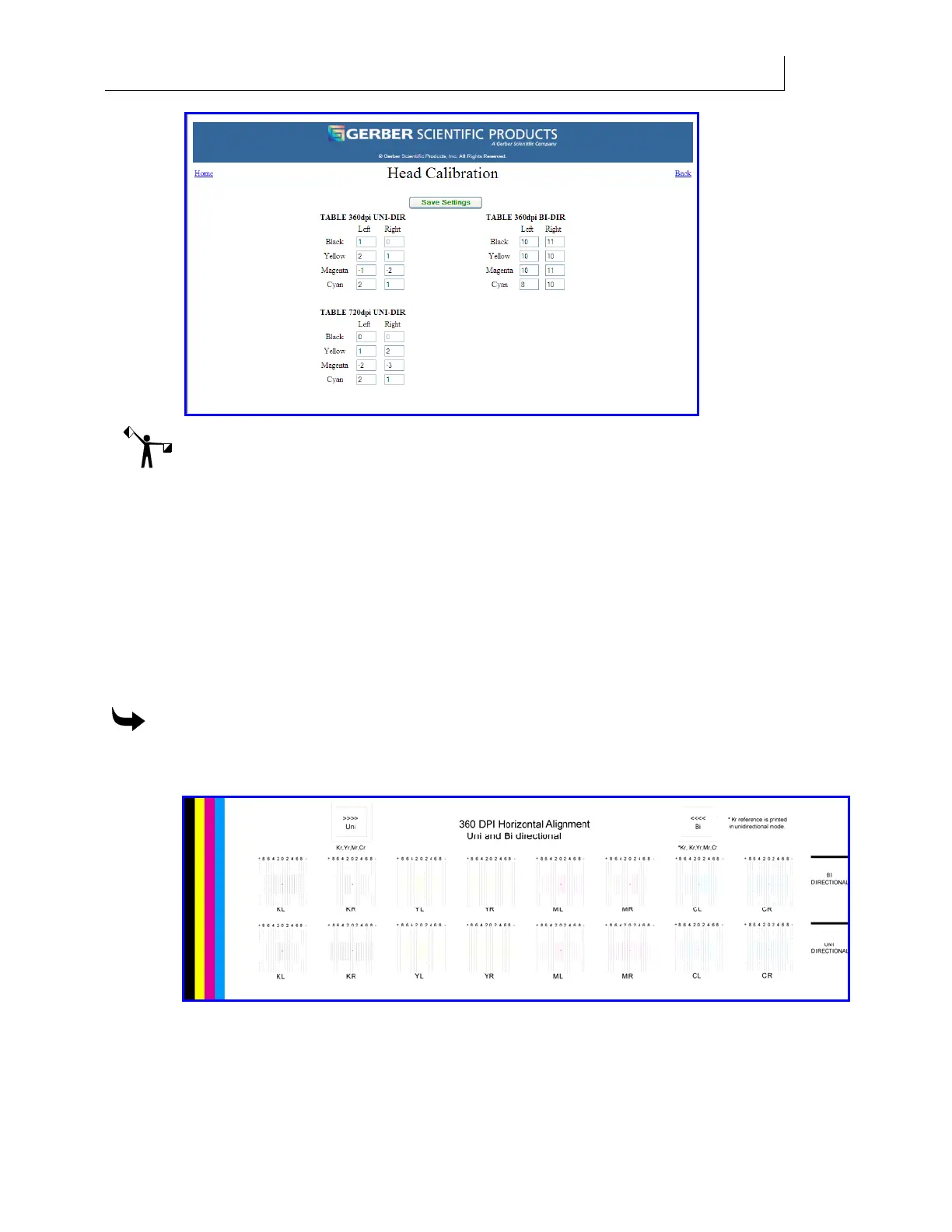 8 Reprint the job and make adjustments to values on Head Calibration page until all the