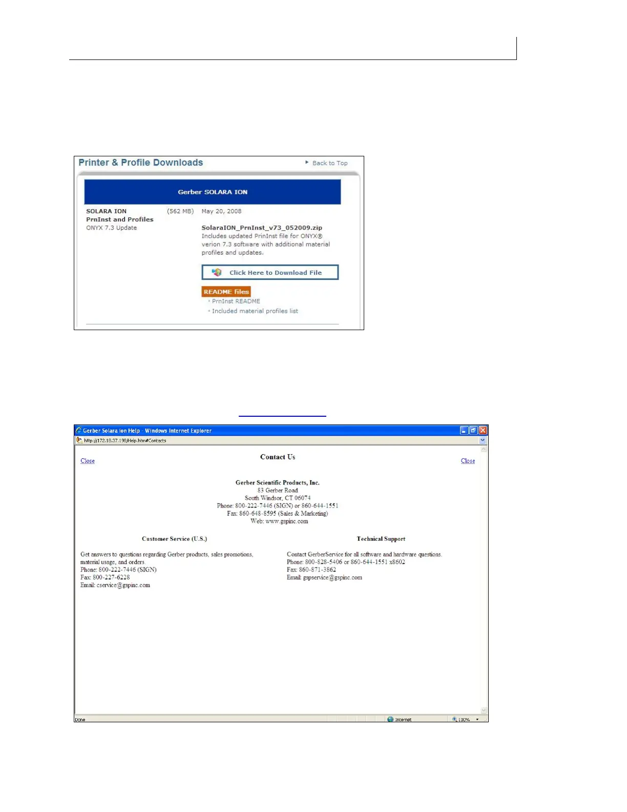 Gerber Service. If you are connected to the Internet you can click the hyperlinks to contact