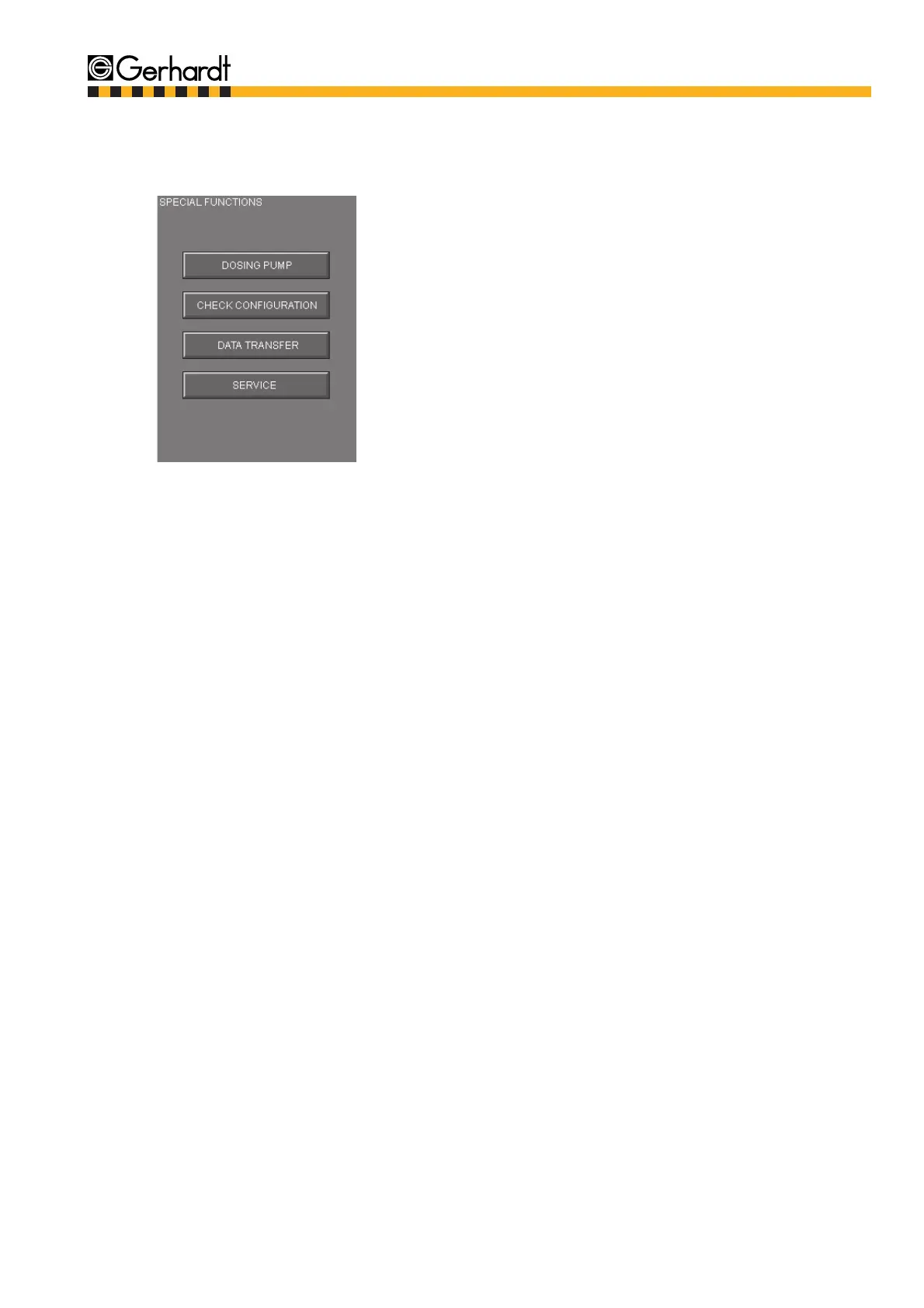 The submenu for the special functions is selected by pressing the key "Special Functions". There are