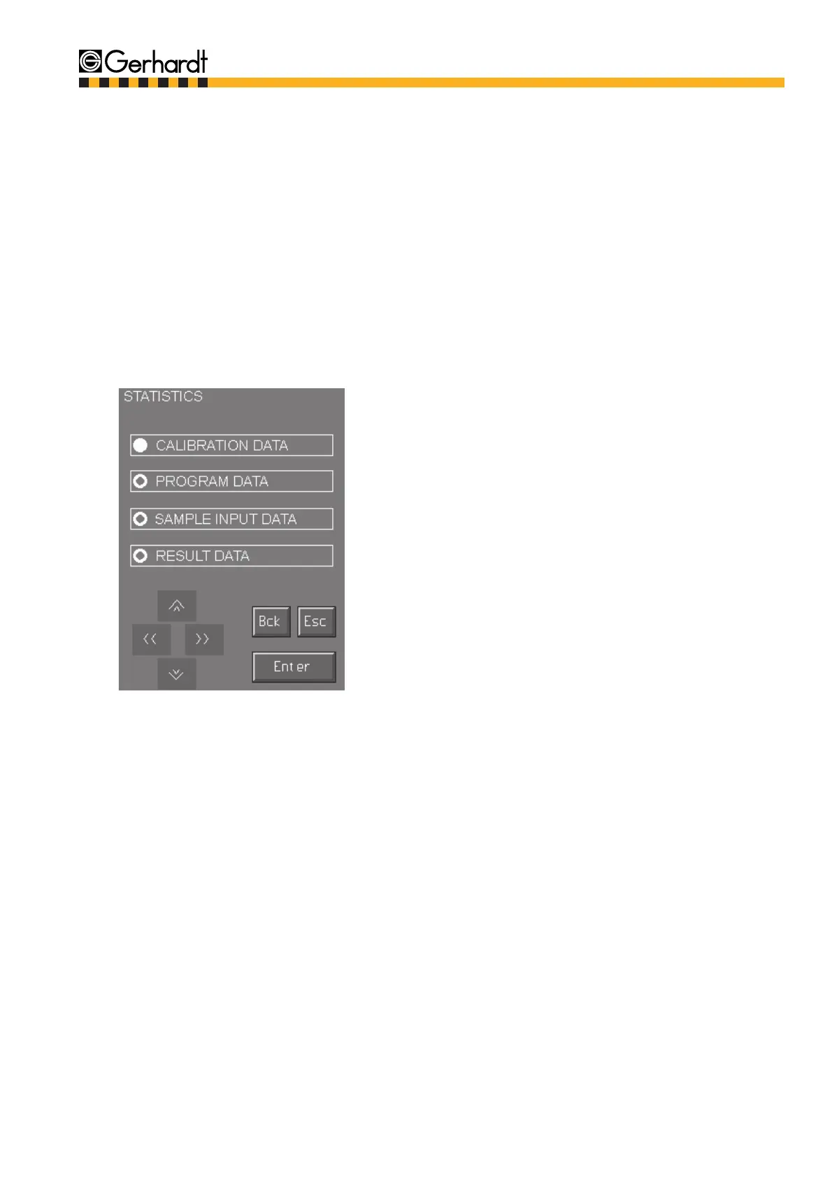 1. Press key "Statistics" in the main menu.