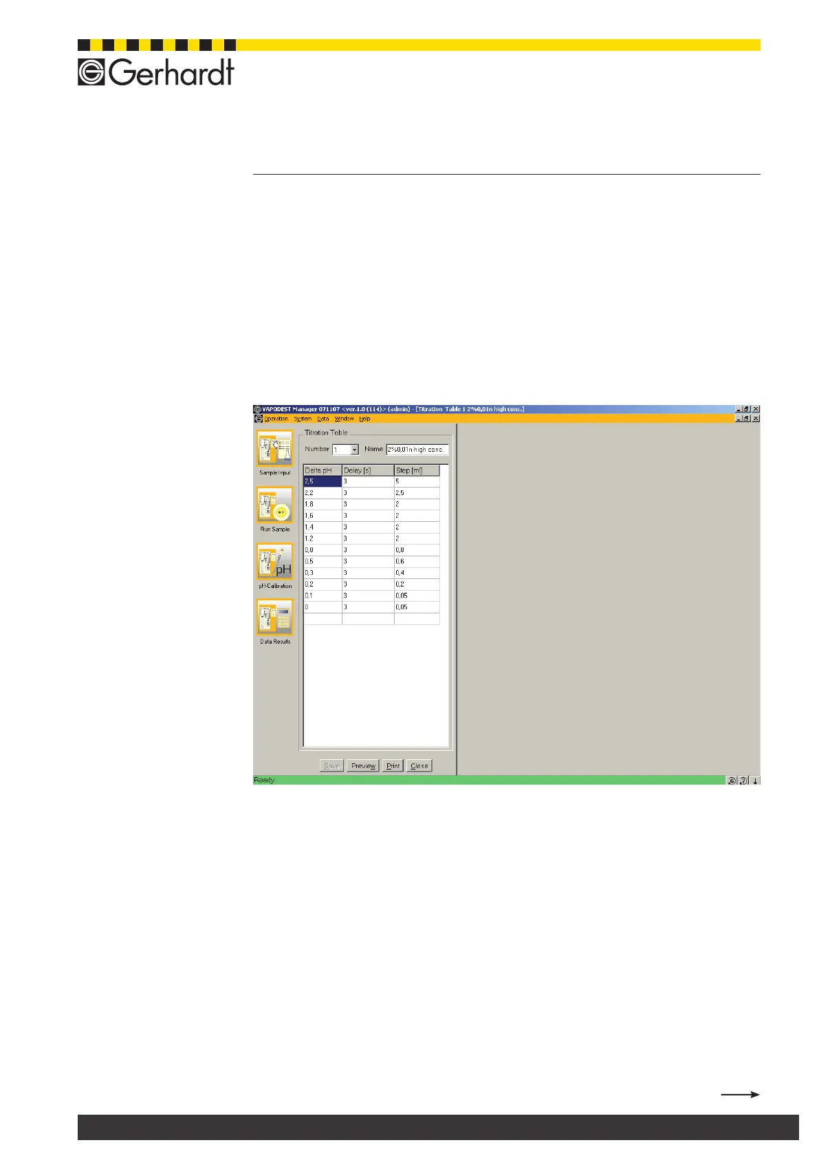 From the menu bar select System > Titrator > Titration table, to open the fol-