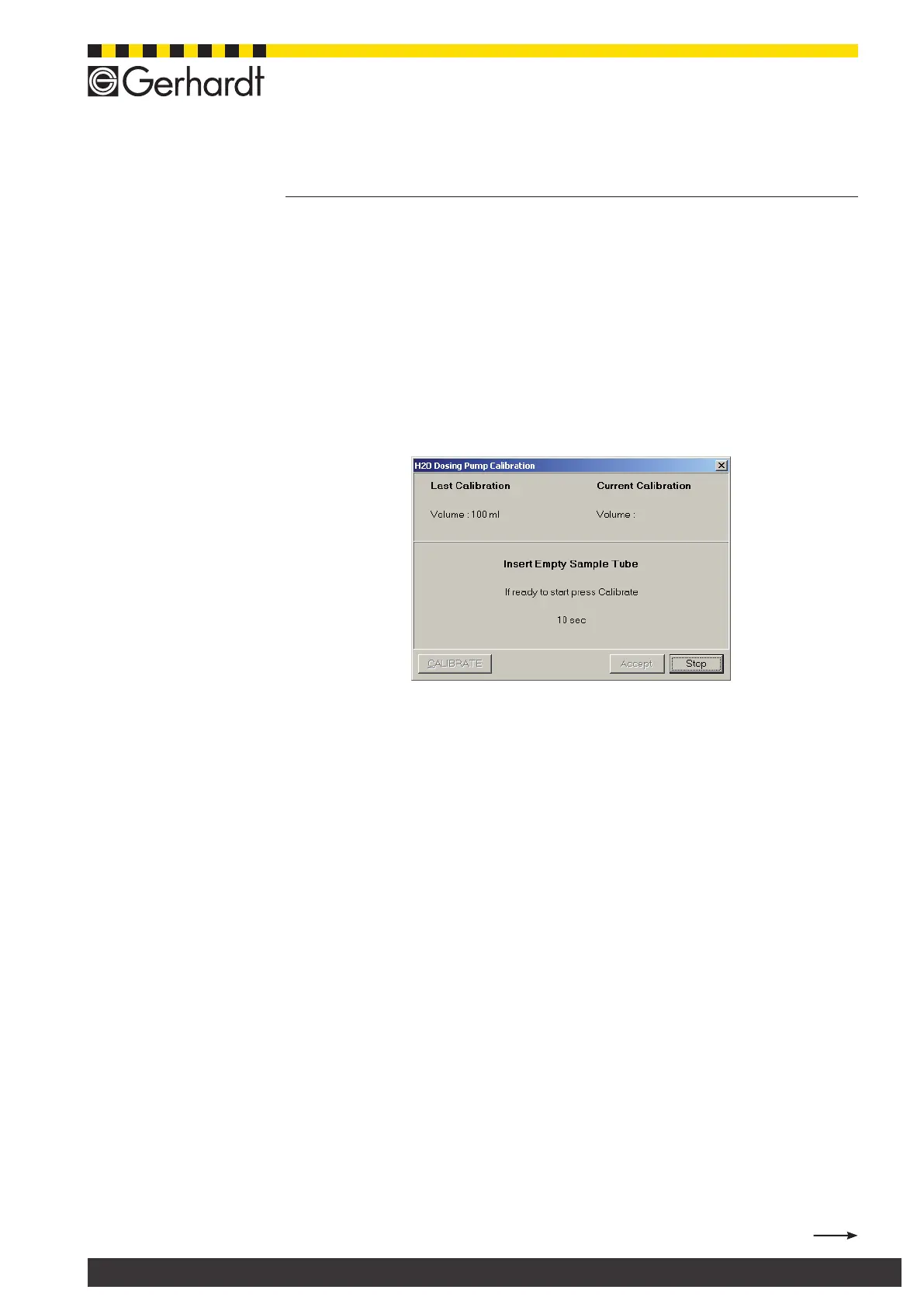 4. Press key "CALIBRATE", to start process. The pump runs for about 10 s and