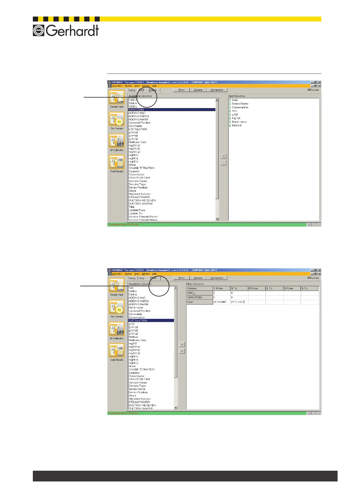 In order to dene the lter criteria of the tables or to alter them, you use the keys