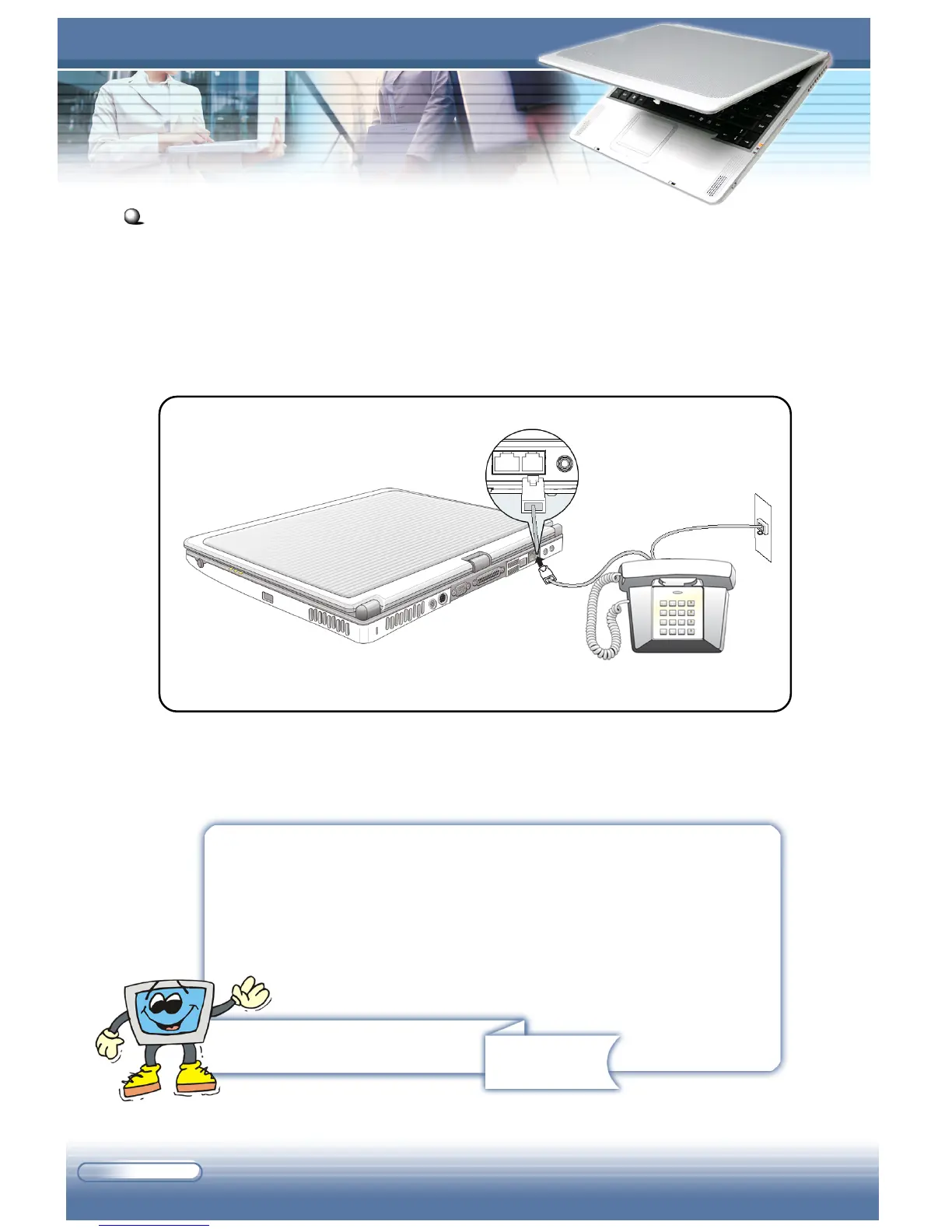 The built-in 56Kbps fax/data modem allows you to use a telephone line to