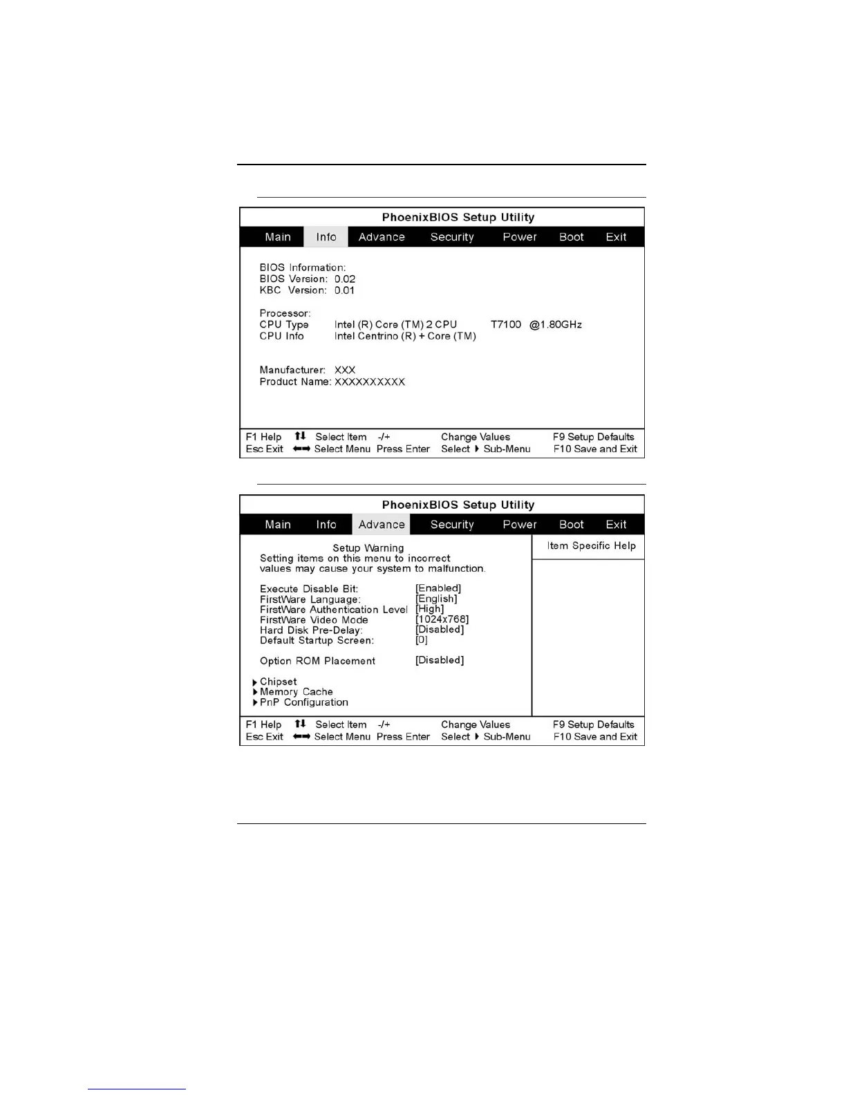 Gericom Notebook Computer - Info Setup; Advanced Setup