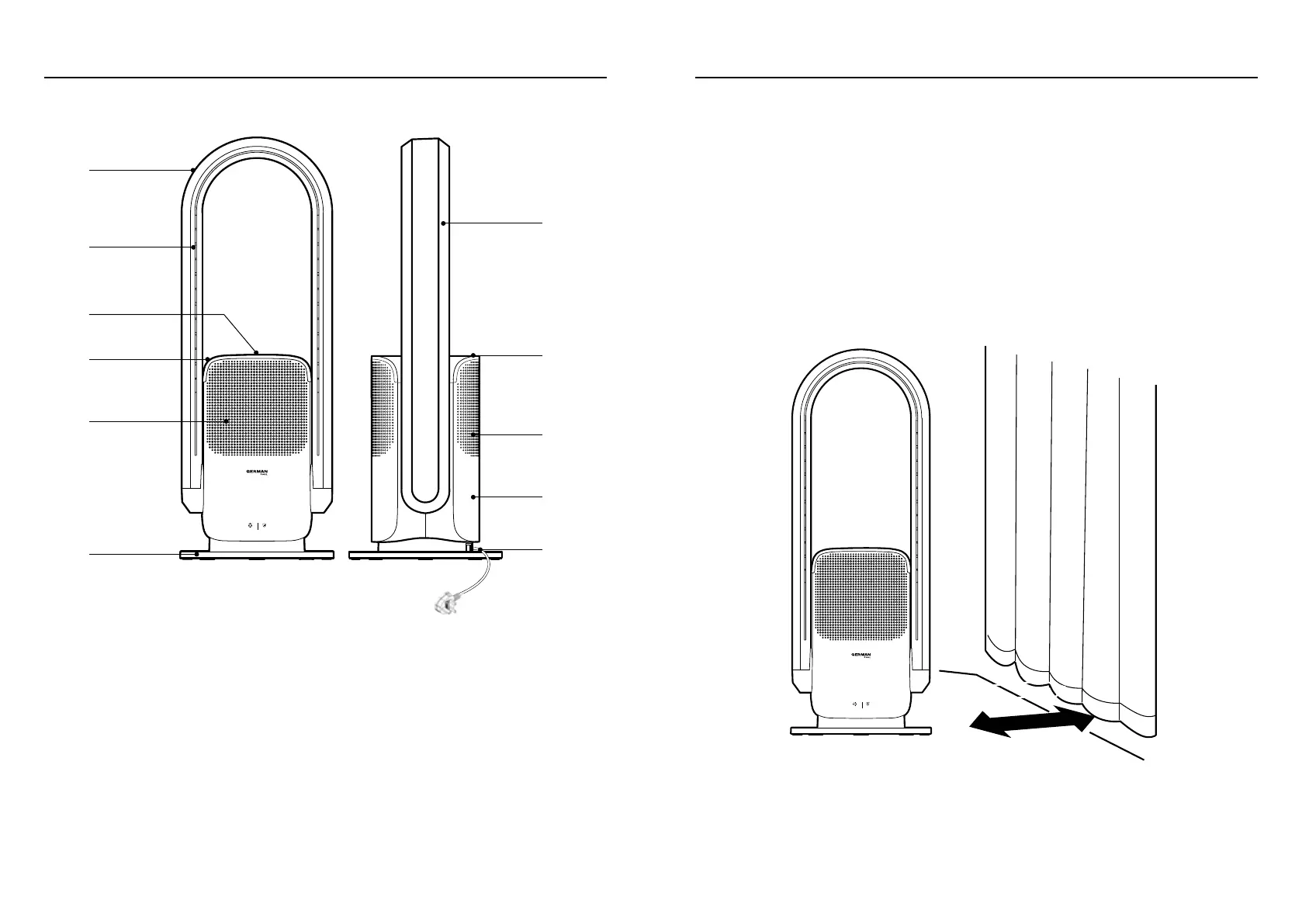 2 在使用過程中,需避免擋住進風口,請遠離裝有窗簾的地方使用以避免物體堵