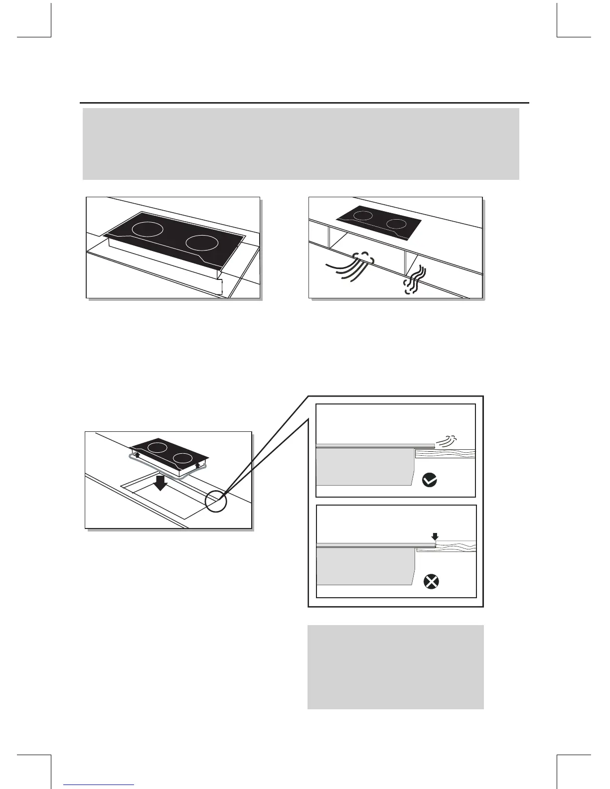 ﹣嵌入式電磁爐周圍不應有任何障礙物阻擋機身,以免影響電磁爐的散熱效能
