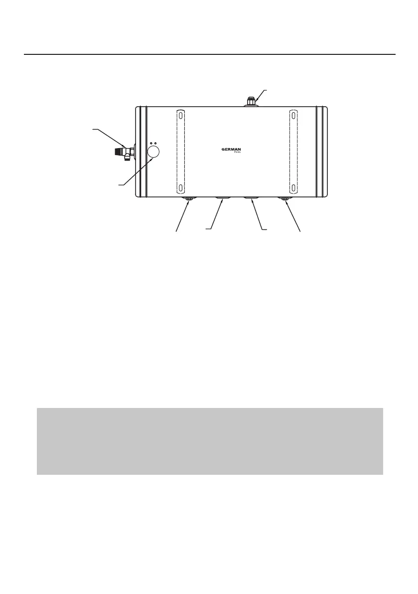 with screws on the wall, align the holes of the back plate of the water heater with the