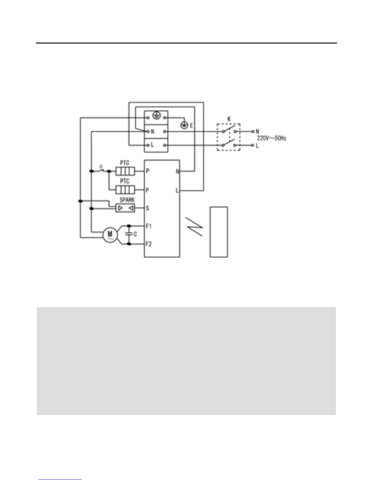K:斷路器 F1:吹風 F2:換氣 P: PTC發熱器 θ: 熱保護器