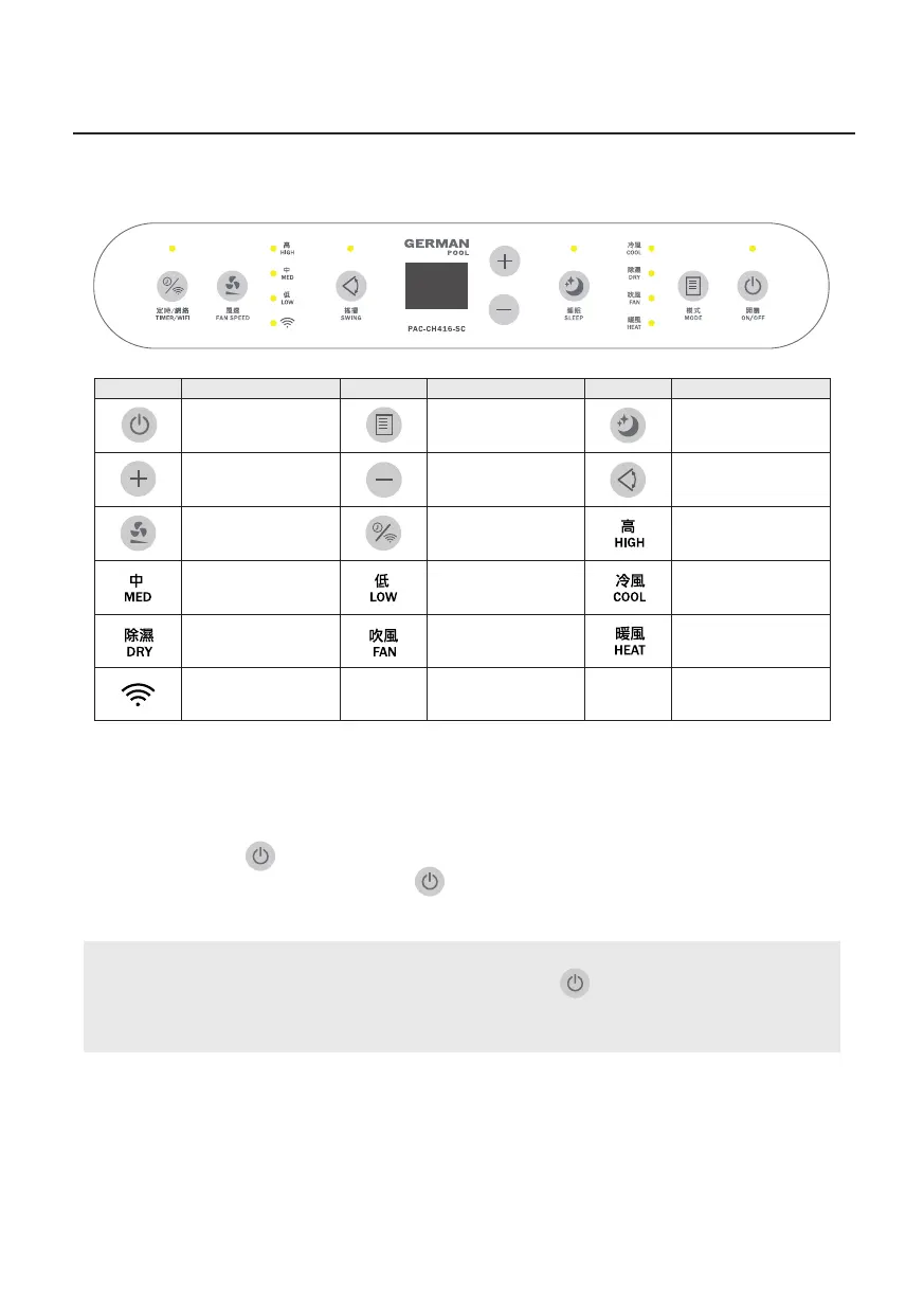 1. Connect product to the power source. Buzzer beeps once, control panel lights up for 1 second