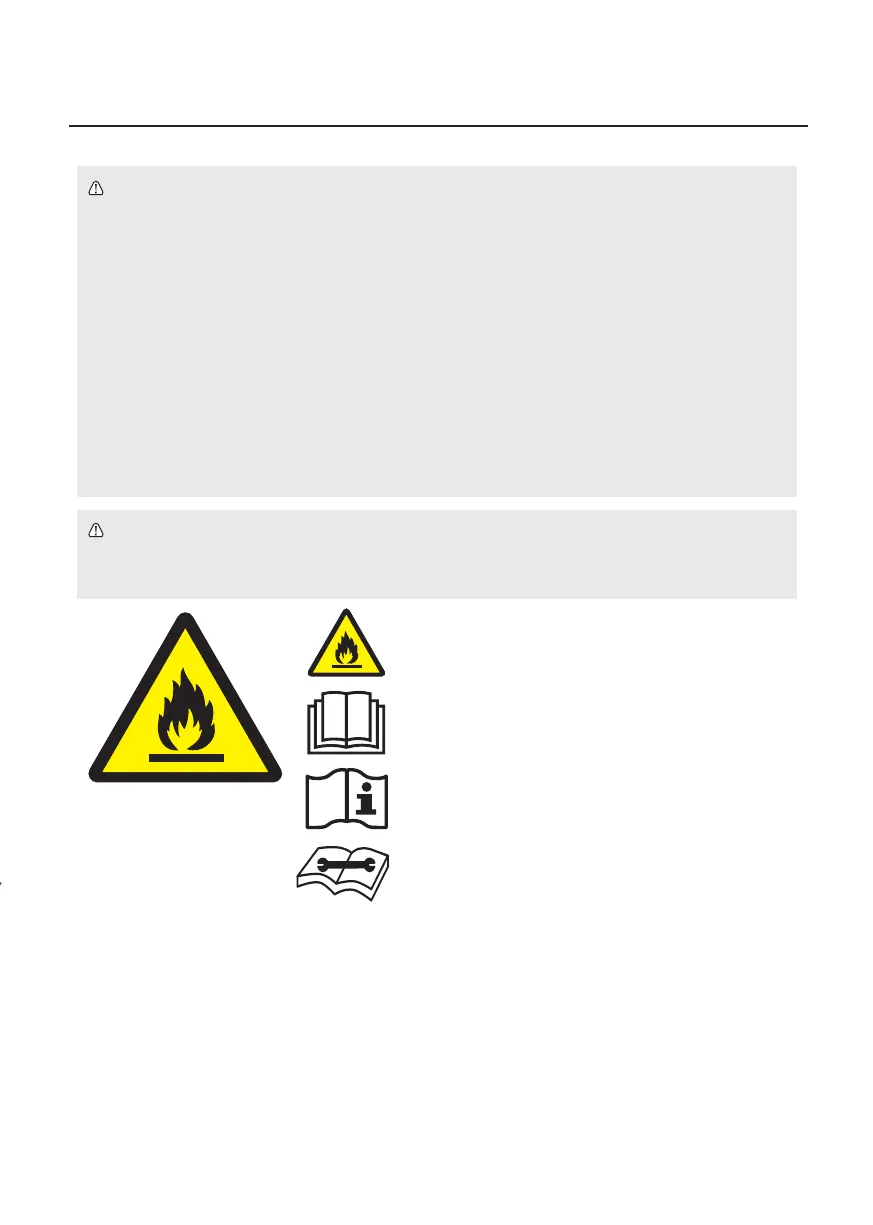 本產品使用易燃製冷劑。如果製冷劑洩漏並接觸到火源或加熱部分,就會產生有害氣體,並有發生
