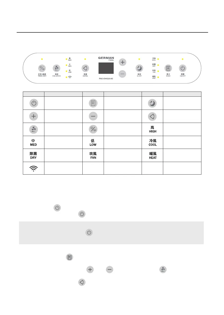 」調整溫度;按「風速鍵 」調整風速(溫度