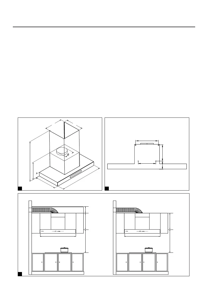 3. Distances between the top of cooker or hob and the lowest part of the hood must be observed: