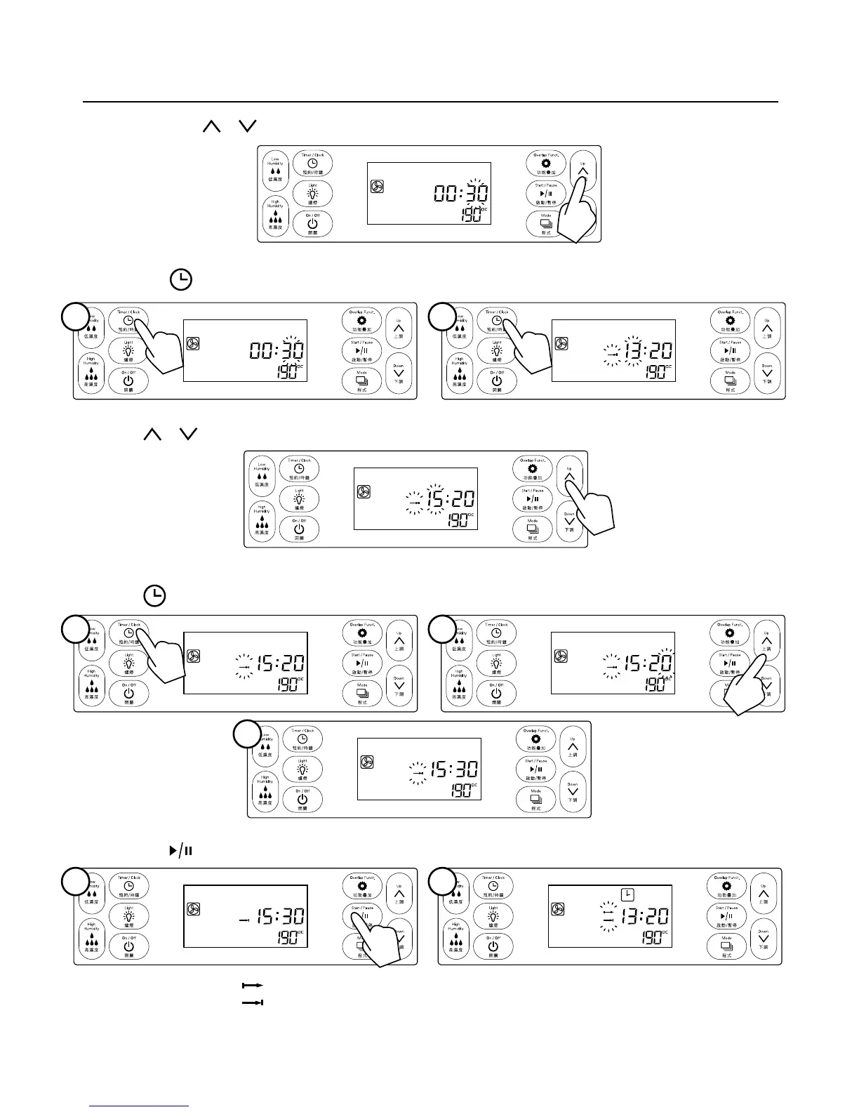 啟動/暫停鍵確認,到此預約設置完成。