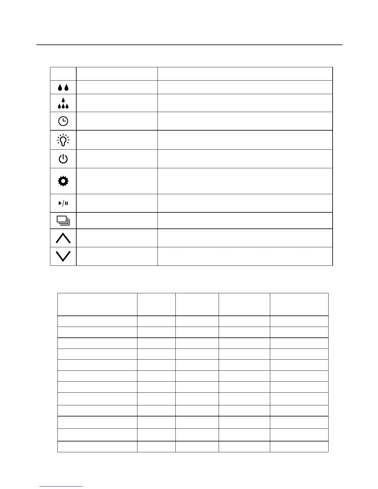 Oven light Oven light ON or OFF.