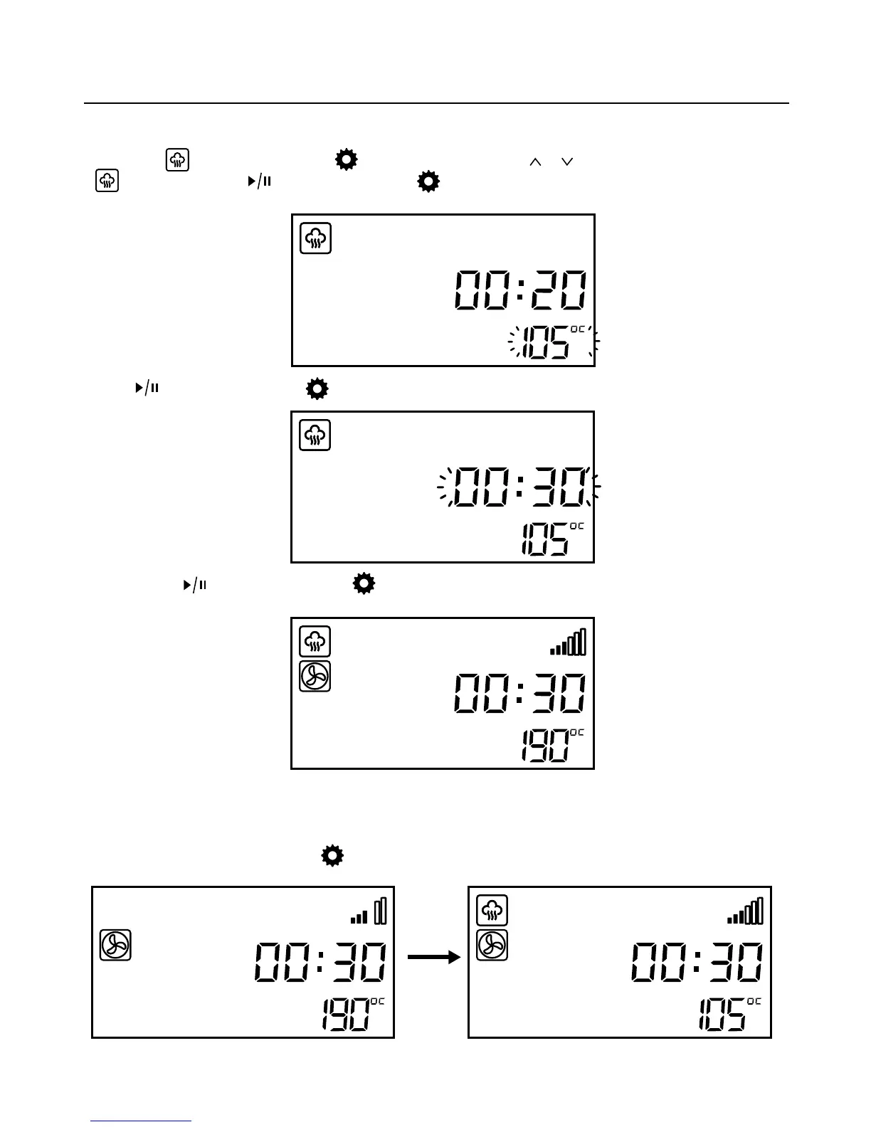 steam mode, press start/pause button or overlap function button, then turn to temperature
