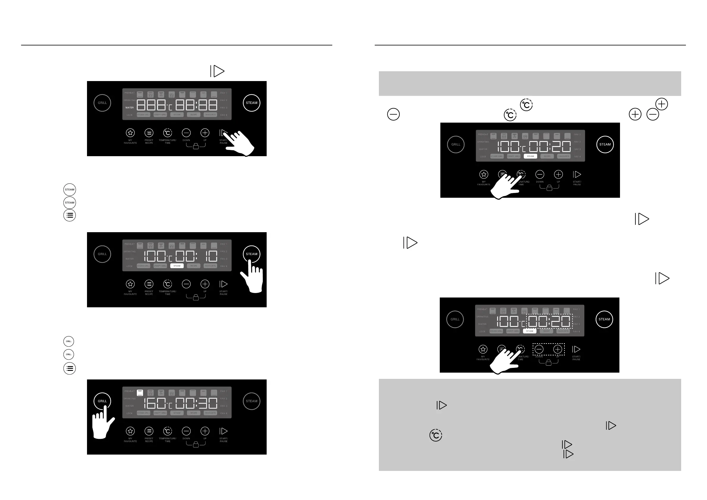 • During cooking, if user wishes to adjust temperature or cooking time, press