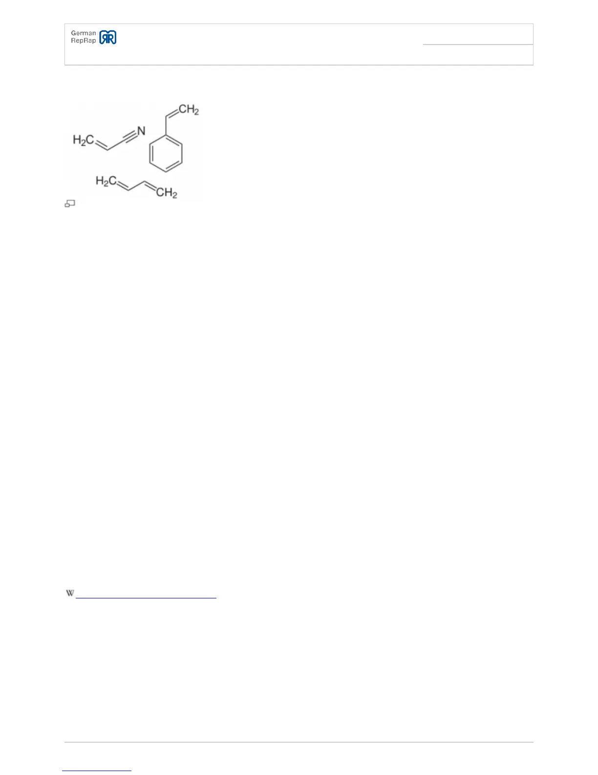 thermoplastics. The proportions can vary from 15 to 35% acrylonitrile, 5 to 30% butadiene and 40 to