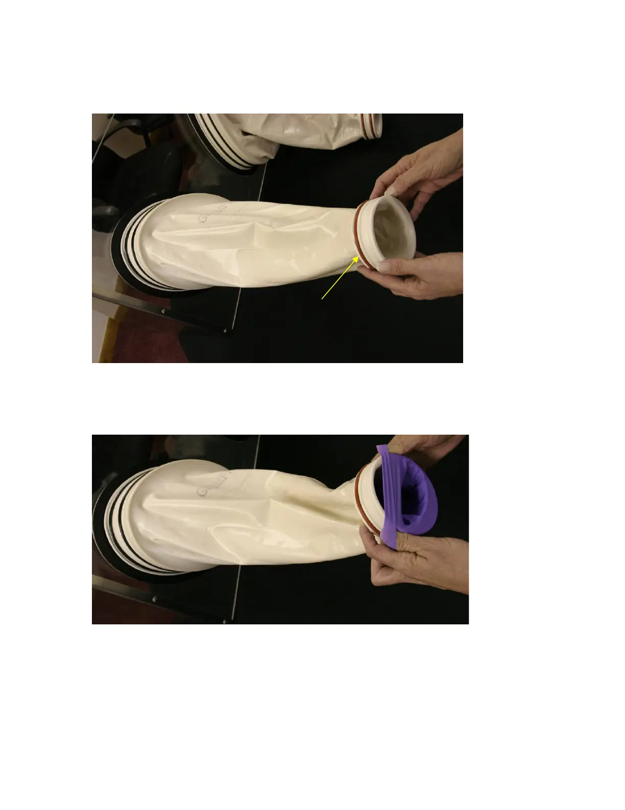 4) Stretch the new glove cuff with both hands before trying to stretch it over the GOS will