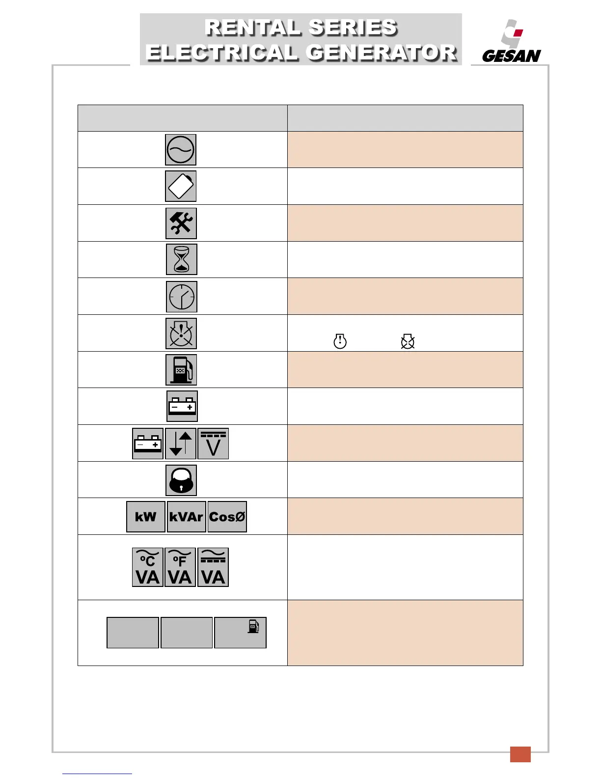 Indicates the percentage of fuel remaining in the generator’s