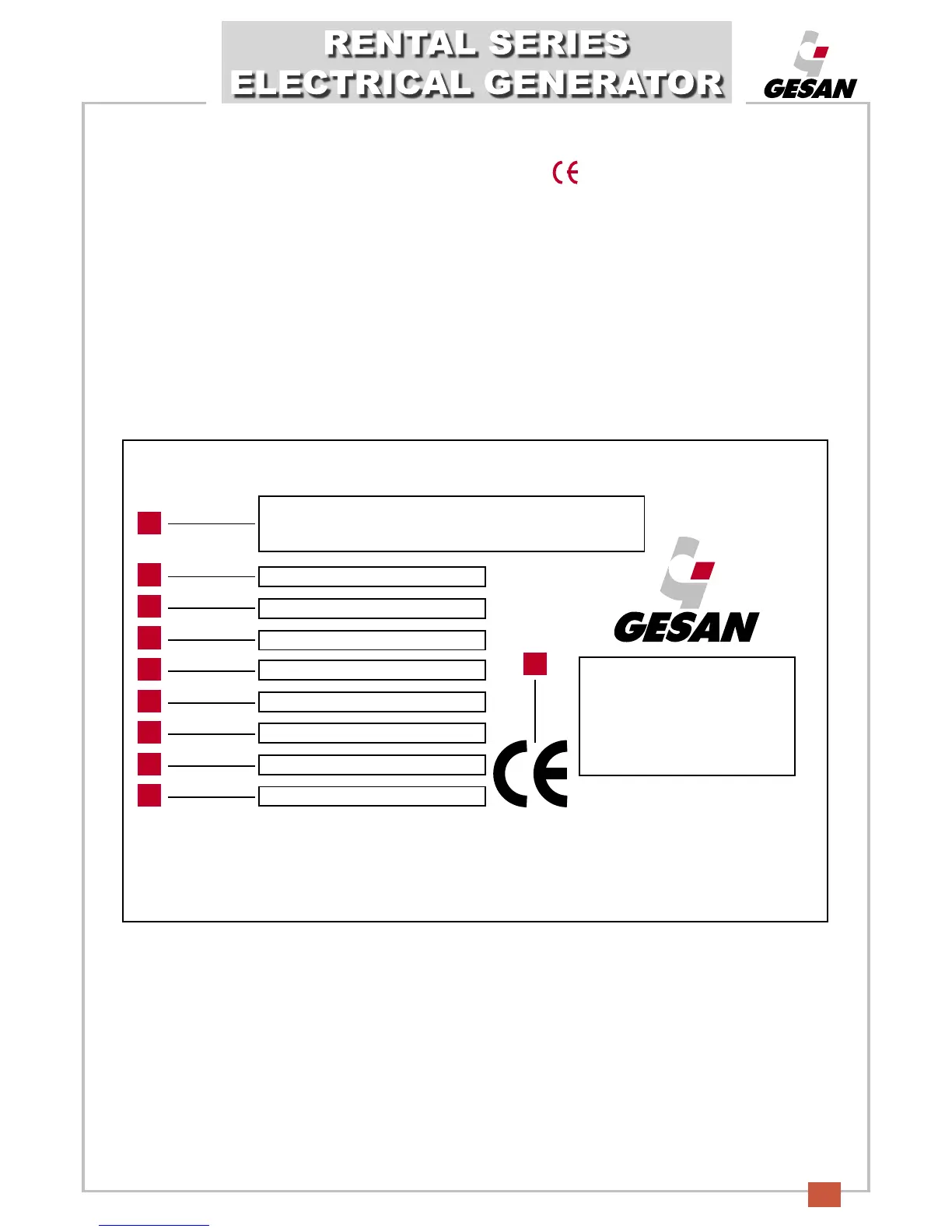 GRUPOS ELECTRÓGENOS GESAN, S.A., shall deliver a CE “Declaration of conformity” form along with the unit, in