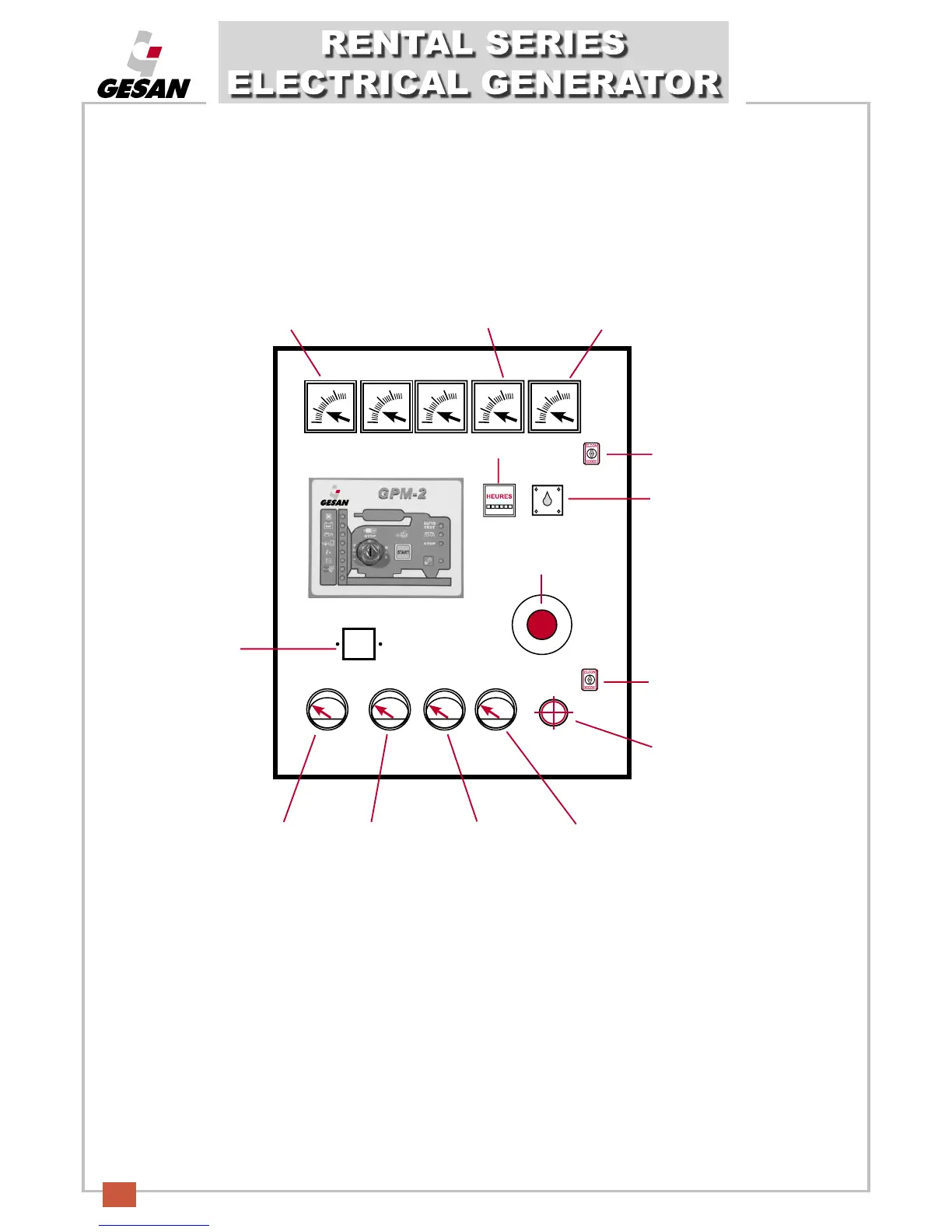 If you purchased a generator unit with a GPM-2 control module, the electrical panel will look like the following