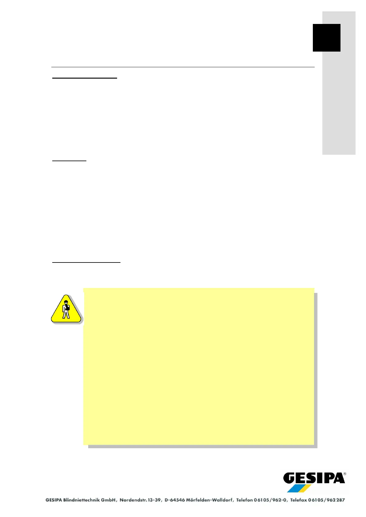Do not operate the blind riveting system in the vicinity of combustible gases or liquids. Danger