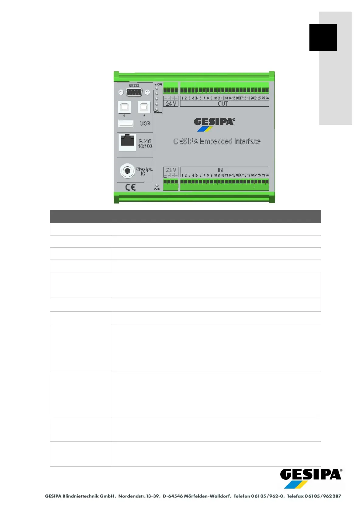 1x USB 2.0 Type A (PC) 1x GESIPA IO (GAV)