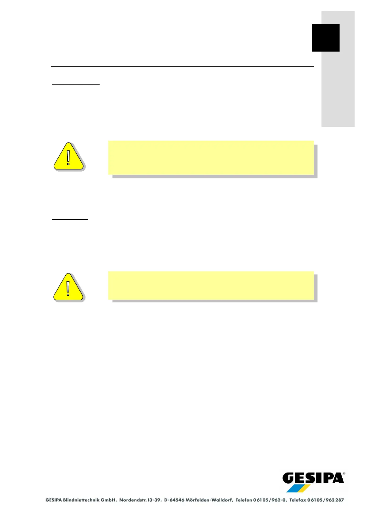 sory, on an even floor. The blind riveting system must be transported by the two lifting eyes
