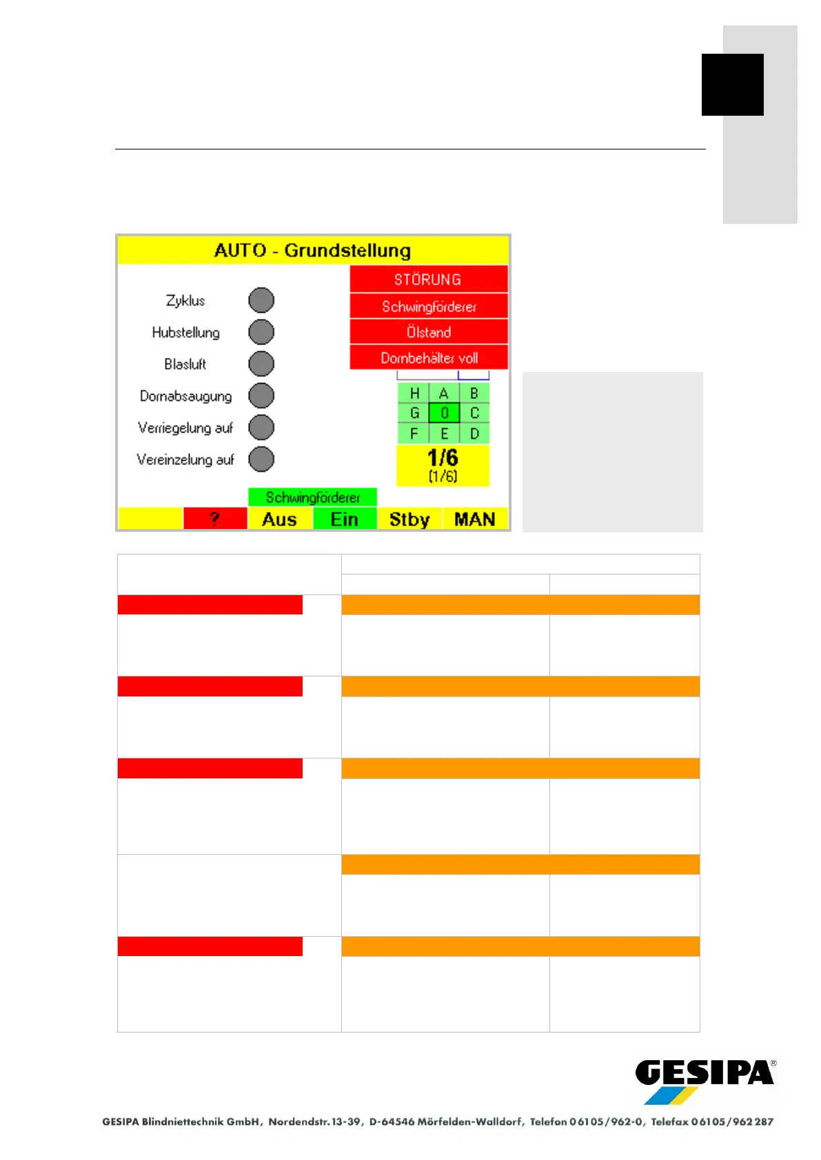 Device faults and malfunctions are shown abbreviated in white text in red fields in the AUTO