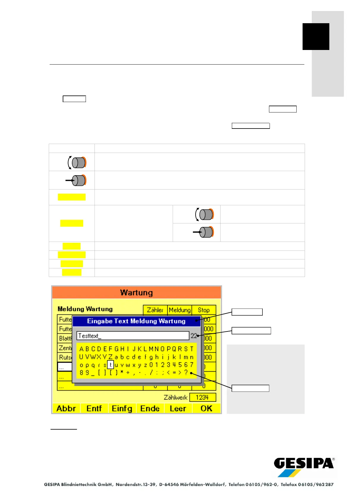 It is necessary to enter text in various menus. An additional window appears for Text entries,