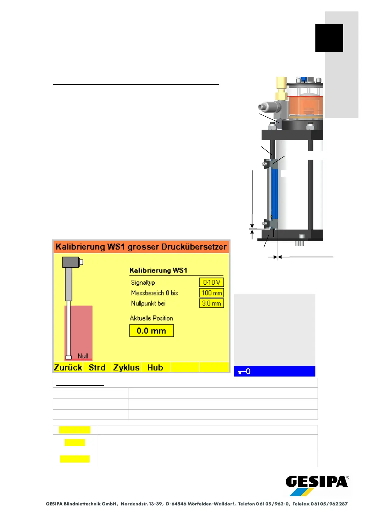 The displacement sensor (WS1) is calibrated and the calibra-