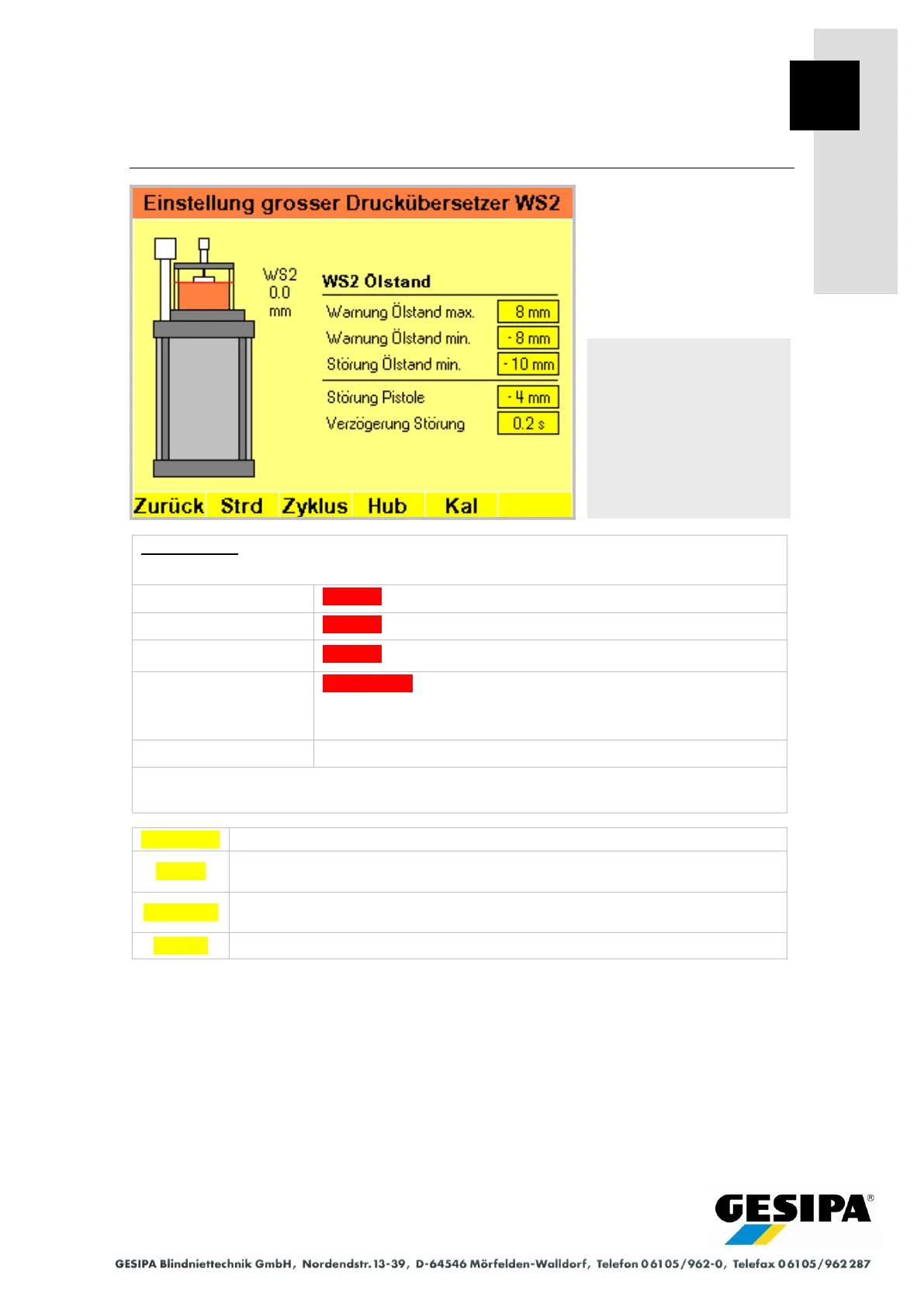 The setting range of the individual parameters can vary depending
