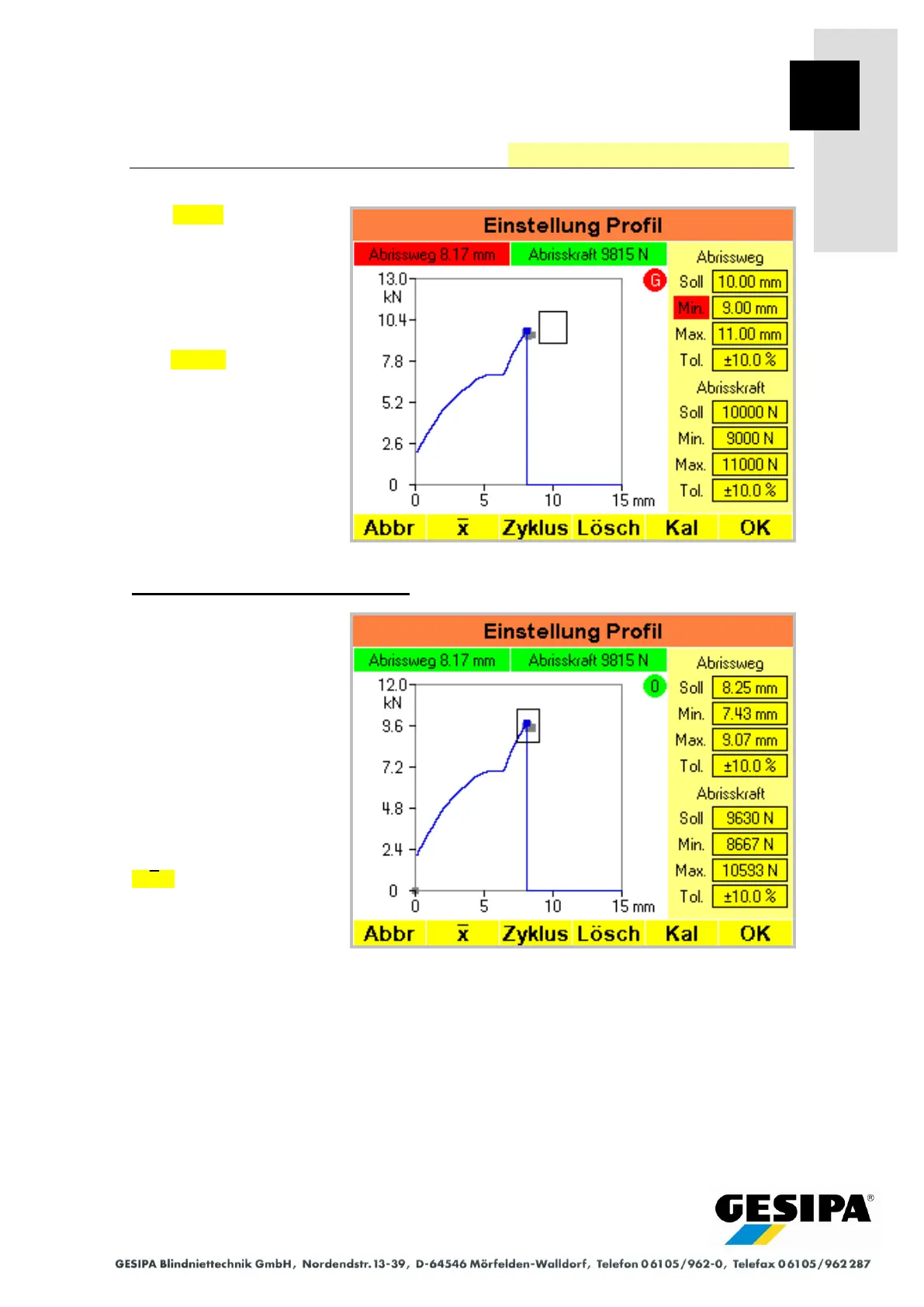 and max. values or the set-