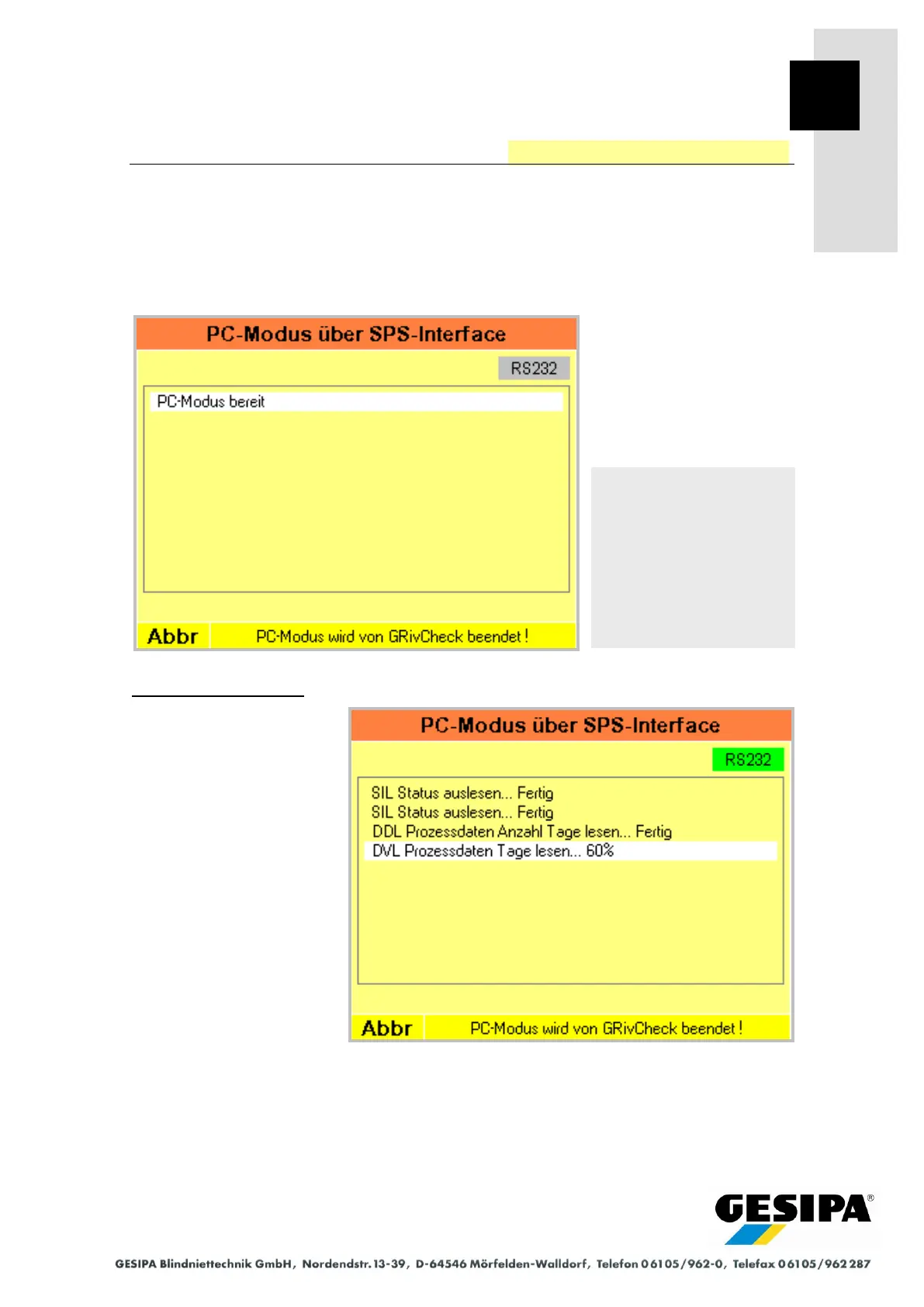In the "GRivCheck" menu the connection between the GAV dialogue unit and PC is prepared
