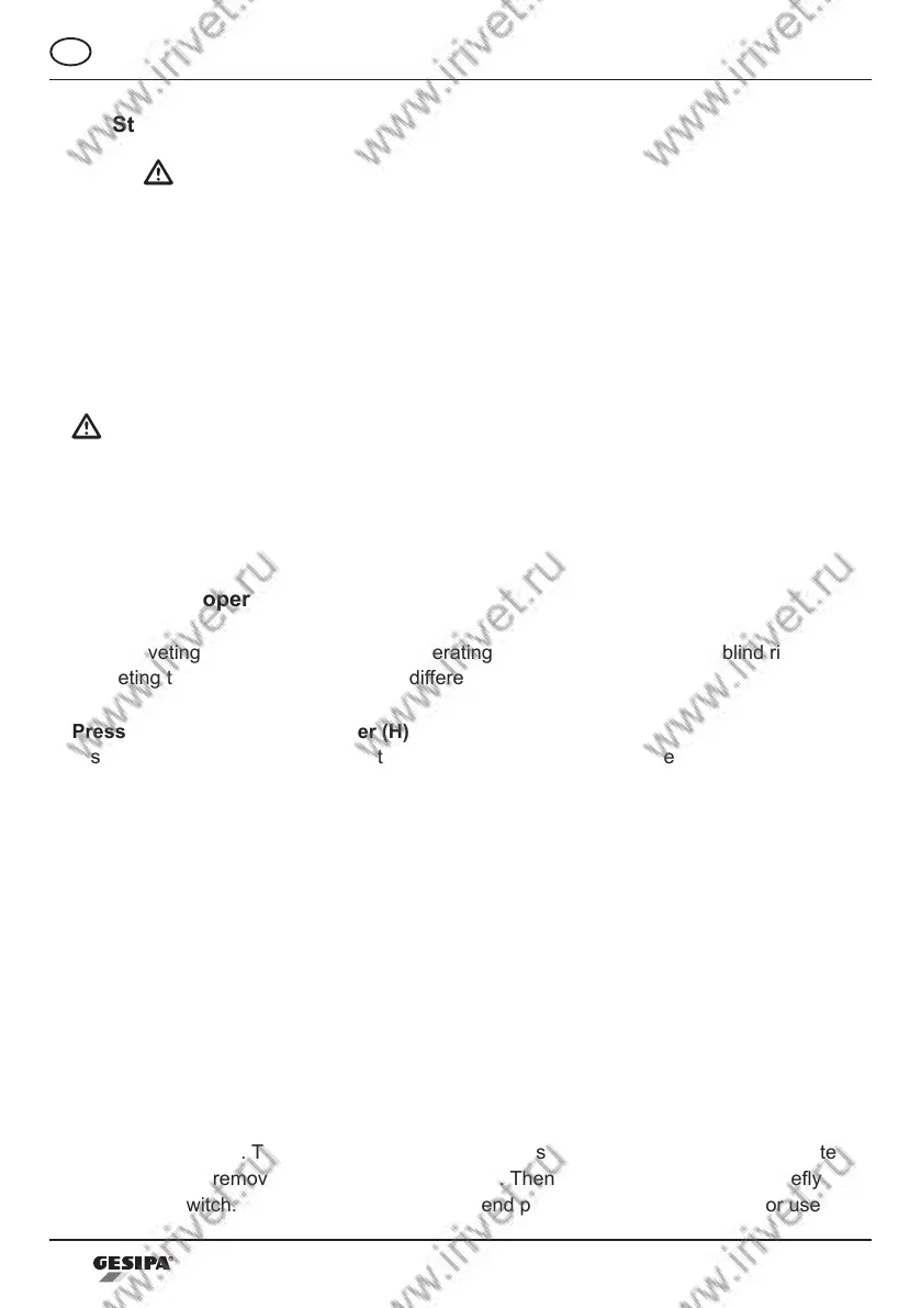 Briey tapping and immediately releasing the trigger (H) does not start the riveting process.