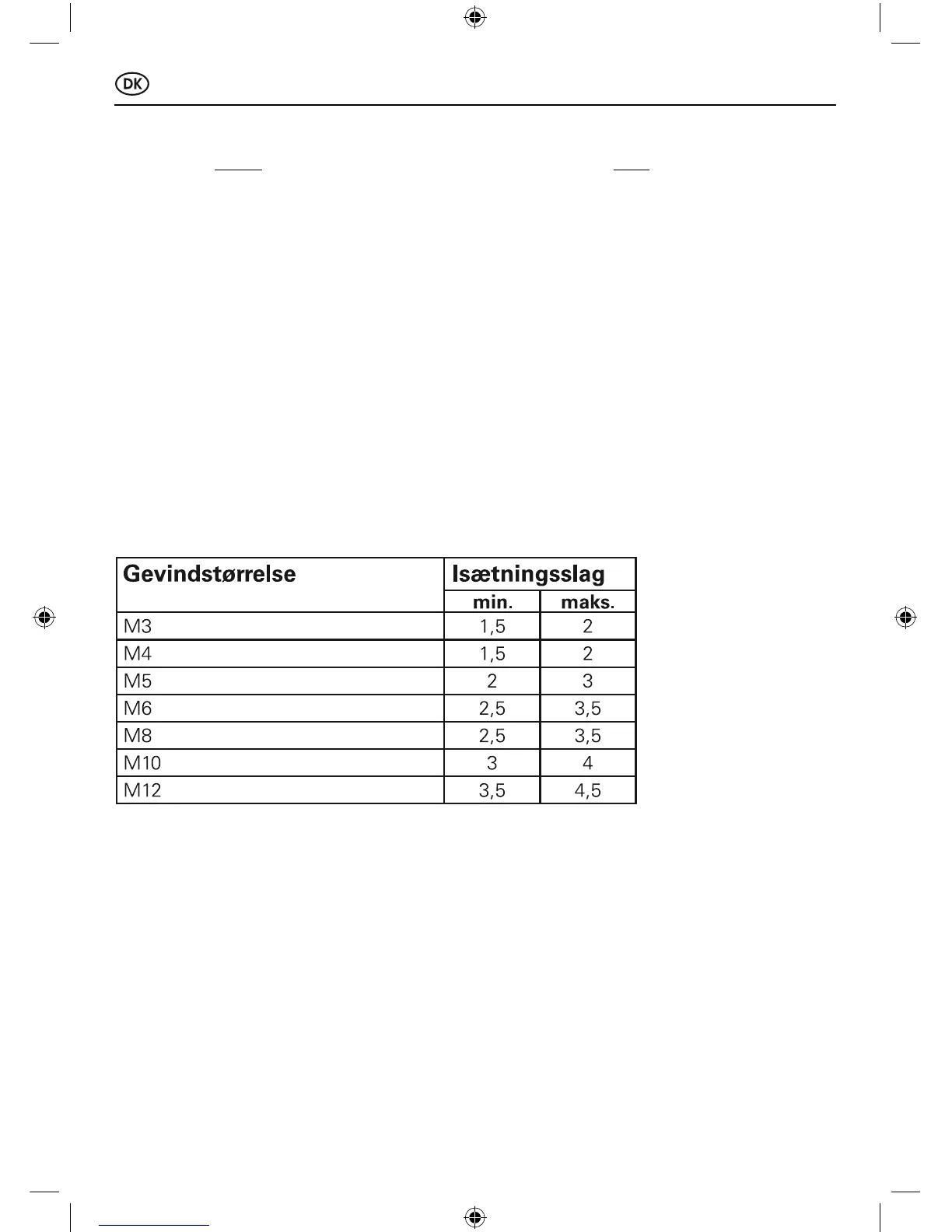 terialet! Slaglængden, som skal indstilles, skal findes ved hjælp af forsøg i det pågældende
