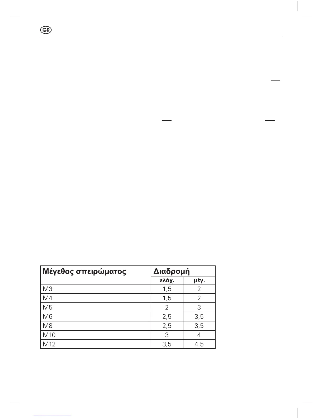 πάχος του υλικού! Η ρυθμιζόμενη διαδρομή πρέπει να εξακριβωθεί με δοκιμές με το ακριβές