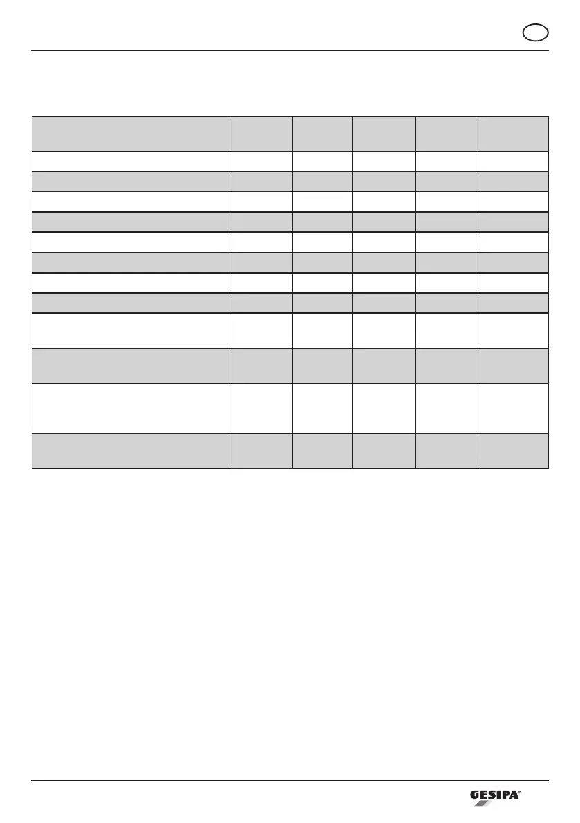 Operating pressure (bar) 5-7 5-7 5-7 5-7 4-6