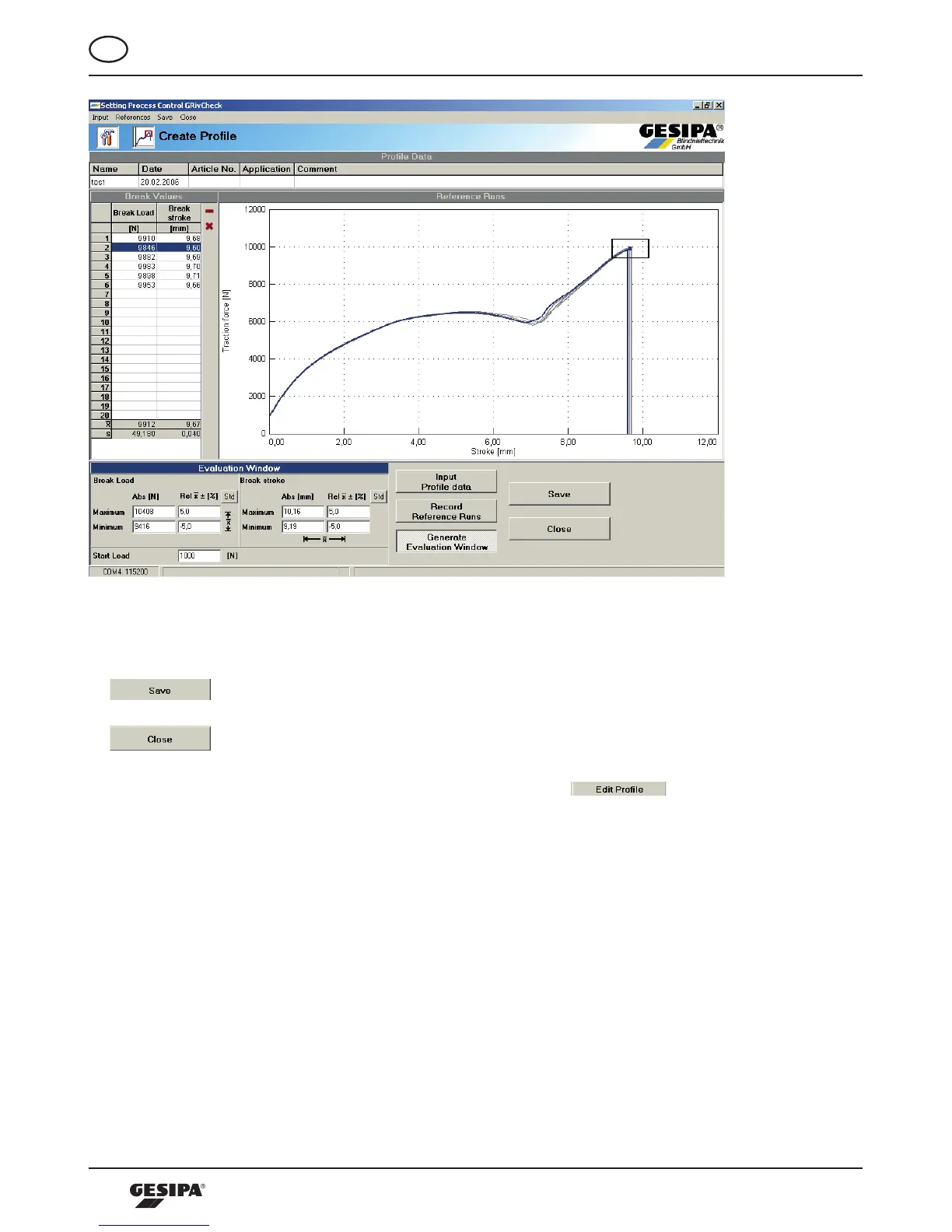 Once the creation of a profile is completed; it can be saved into the PC. To do so, press the